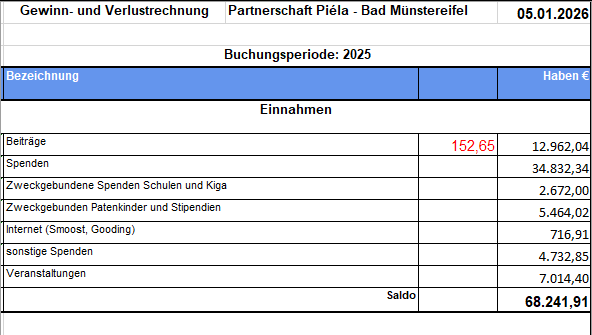 Vertrauen und Transparenz ist für die Partnerschaft Piéla – Bad Münstereifel sehr wichtig. Daher unterstützen wir die Transparenzanforderungen der „Initiative Transparente Zivilgesellschaft (ITZ)“ mit unserer Selbstverpflichtung, die geforderten Informationen transparent, entsprechend den Vorgaben des Leitfadens des ITZ, zu veröffentlichen.